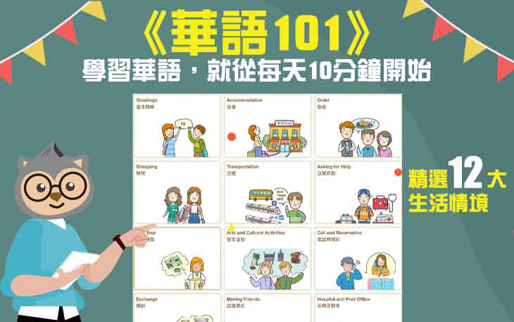 臺灣華語教育資源中心專為初學者設計的教育部補助教材《華語101》,讓孩子在家也能輕鬆學華語!精選12大生活情境,從打招呼、問路、點餐到就醫通通有,以實用生活對話帶你輕鬆學華語!
