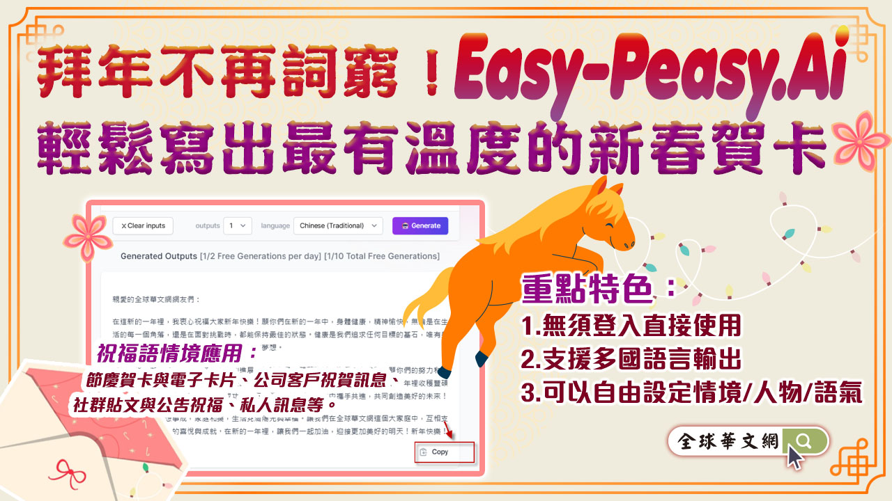 拜年不再詞窮!Easy-Peasy.Ai 輕鬆寫出最有溫度的新春賀卡