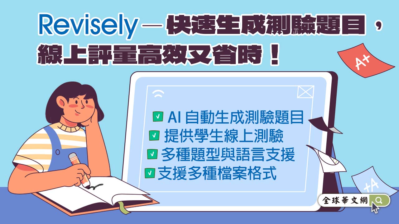 Revisely為線上測驗輔助工具,協助教師輕鬆將各類型檔案教材一鍵轉化為多元題型測驗,不論是單選、複選、是非還是問答題,都能快速生成,讓評量設計更有效率!
