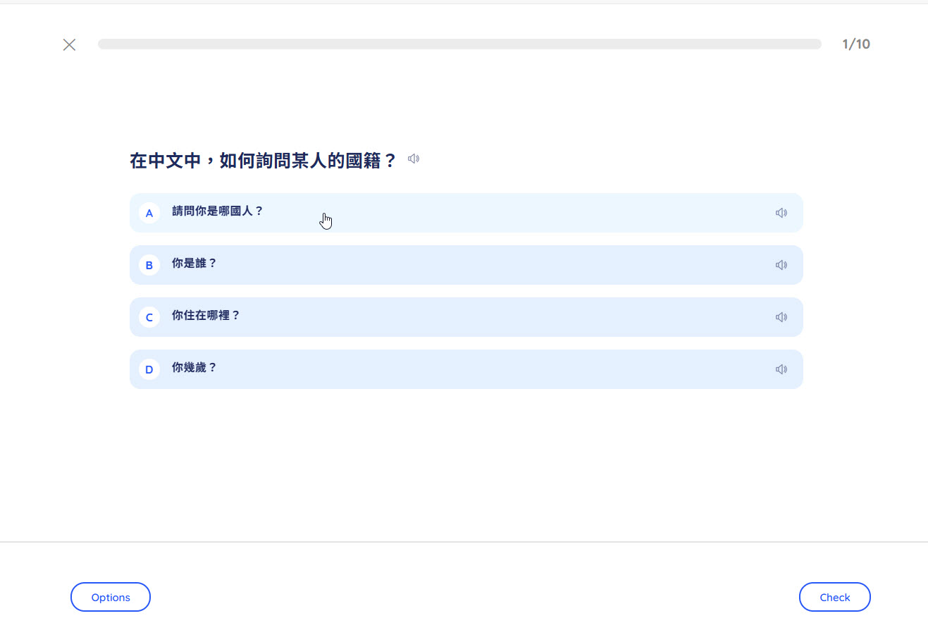此範例選擇「10題」。