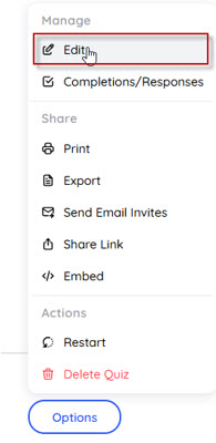 選擇「Options」再點選「Edit」即可進行題目編輯調整。