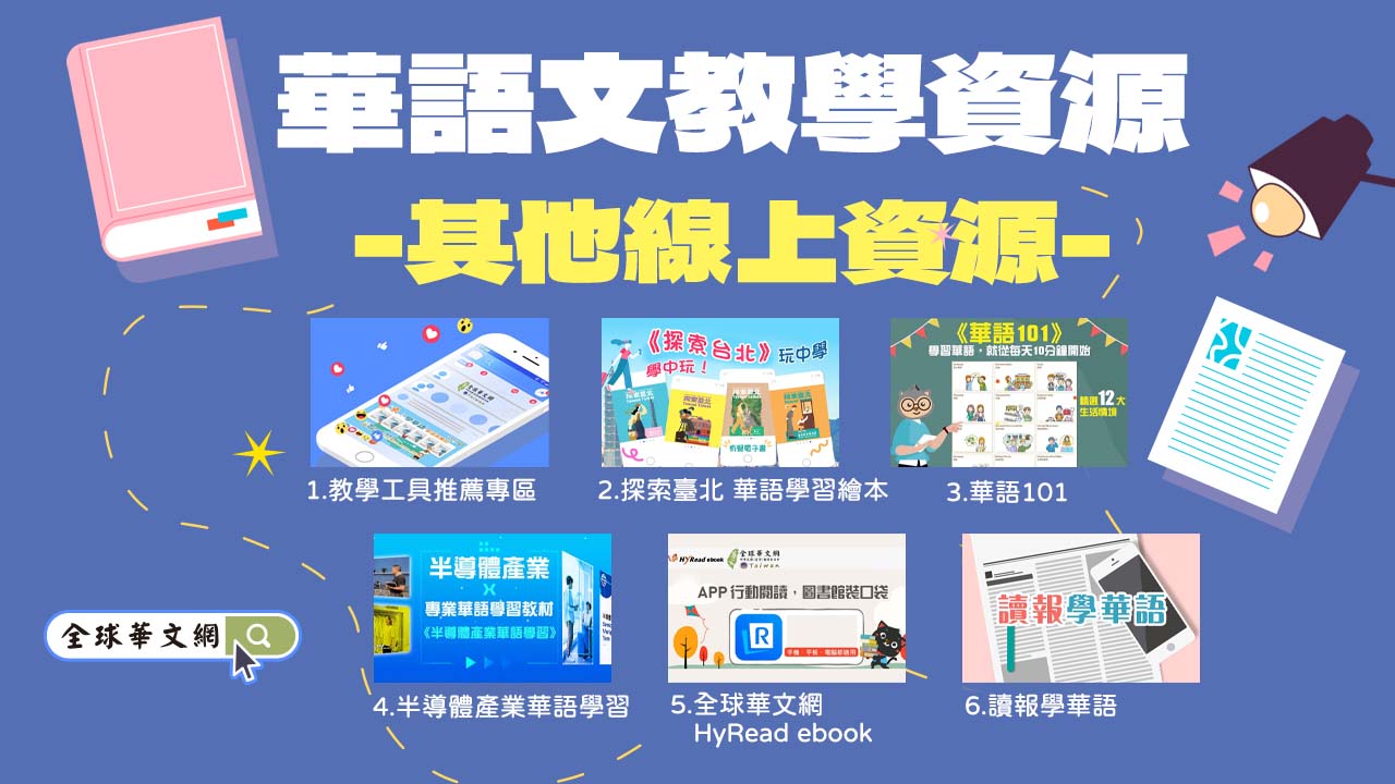 華語文教學資源-其他線上資源:https://www.huayuworld.org/MandarinResourcesDetail/MandarinResourcesDetail/Index/132