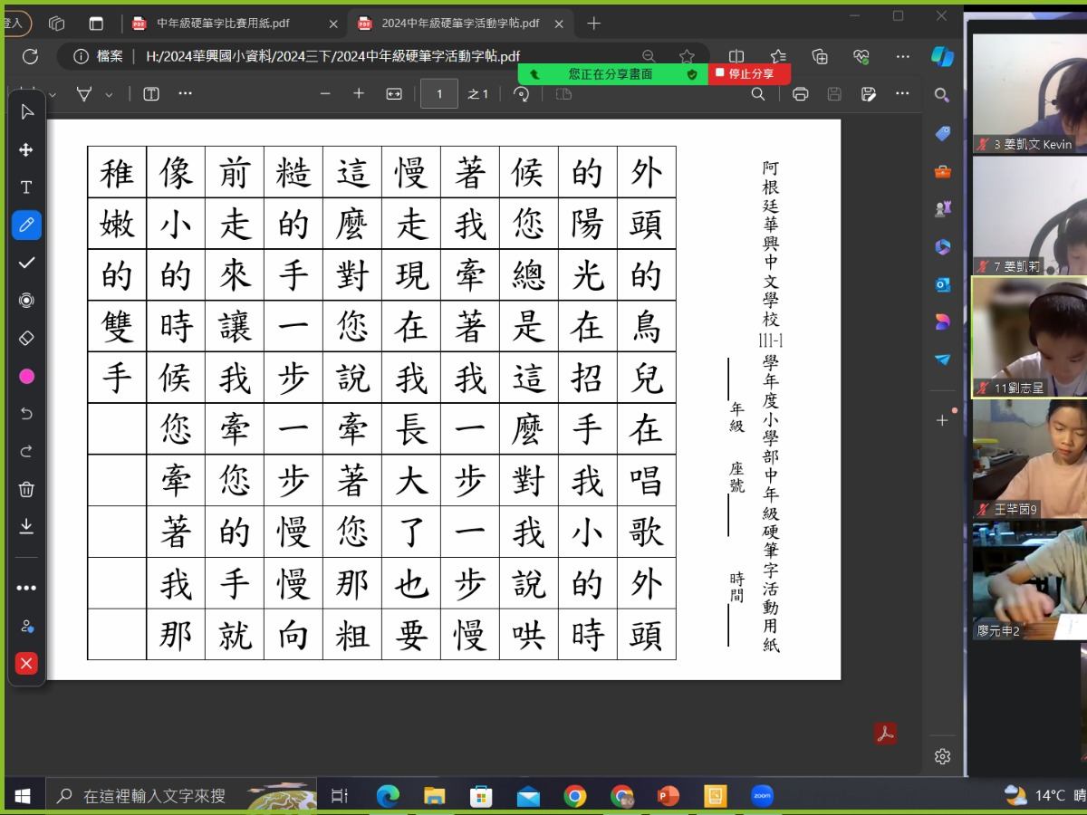 2024學年度愛育學校「正體漢字文化節國語文國小中低年級組造詞比賽」