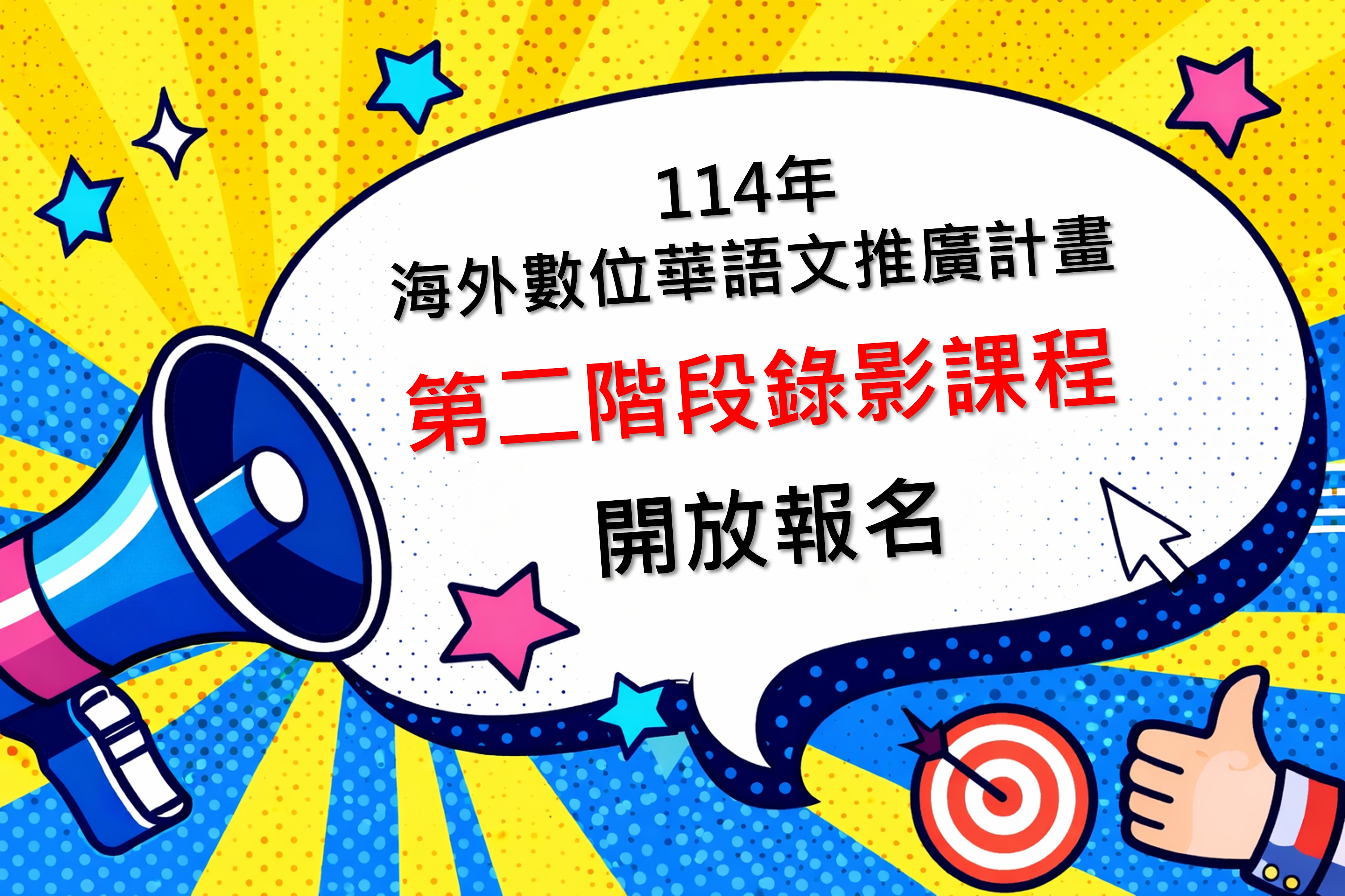 考量部分教師未能參與第⼀階段同步課程,或有複習之需求,本年度提供「 114年海外數位華語文推廣計畫」第⼆階段錄影課程進行報名。