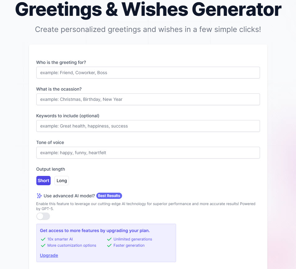 步驟1:請至Easy-Peasy.Ai祝福語/賀卡訊息產生器網頁(https://easy-peasy.ai/templates/greetings-generator),無需登入即可開始使用。