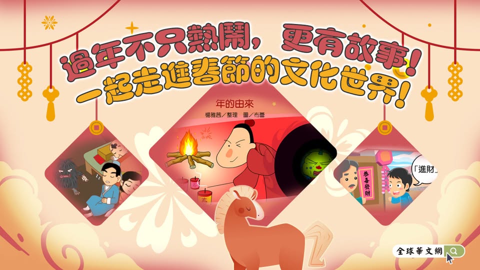 今年過年,「全球華文網」陪你一起:讀故事 × 學語言 × 懂文化,無論你身在世界哪個角落,都能透過文字與故事,感受濃濃的春節年味 精選春節主題內容一次看: 1.壓歲錢的傳說 https://biweekly.huayuworld.org/Material/192/Text 2.「年」的由來 https://biweekly.huayuworld.org/Material/191/Text 3.「進財」進門招財 https://biweekly.huayuworld.org/material/301
