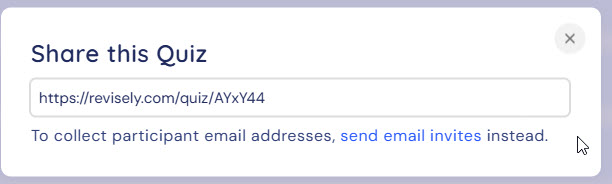 選擇「Options」後,再點選「Share Link」即可複製測驗連結分享給學生進行測驗。