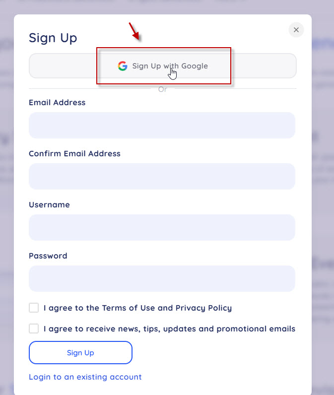 選擇[Sign Up with Google]快速註冊