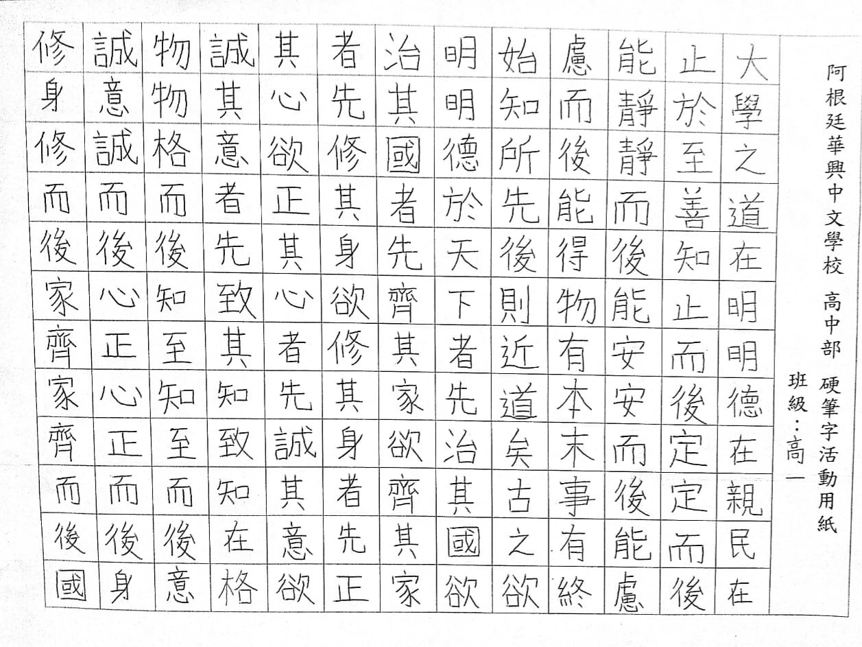 阿根廷華興中文學校 2021 中學生硬筆字活動