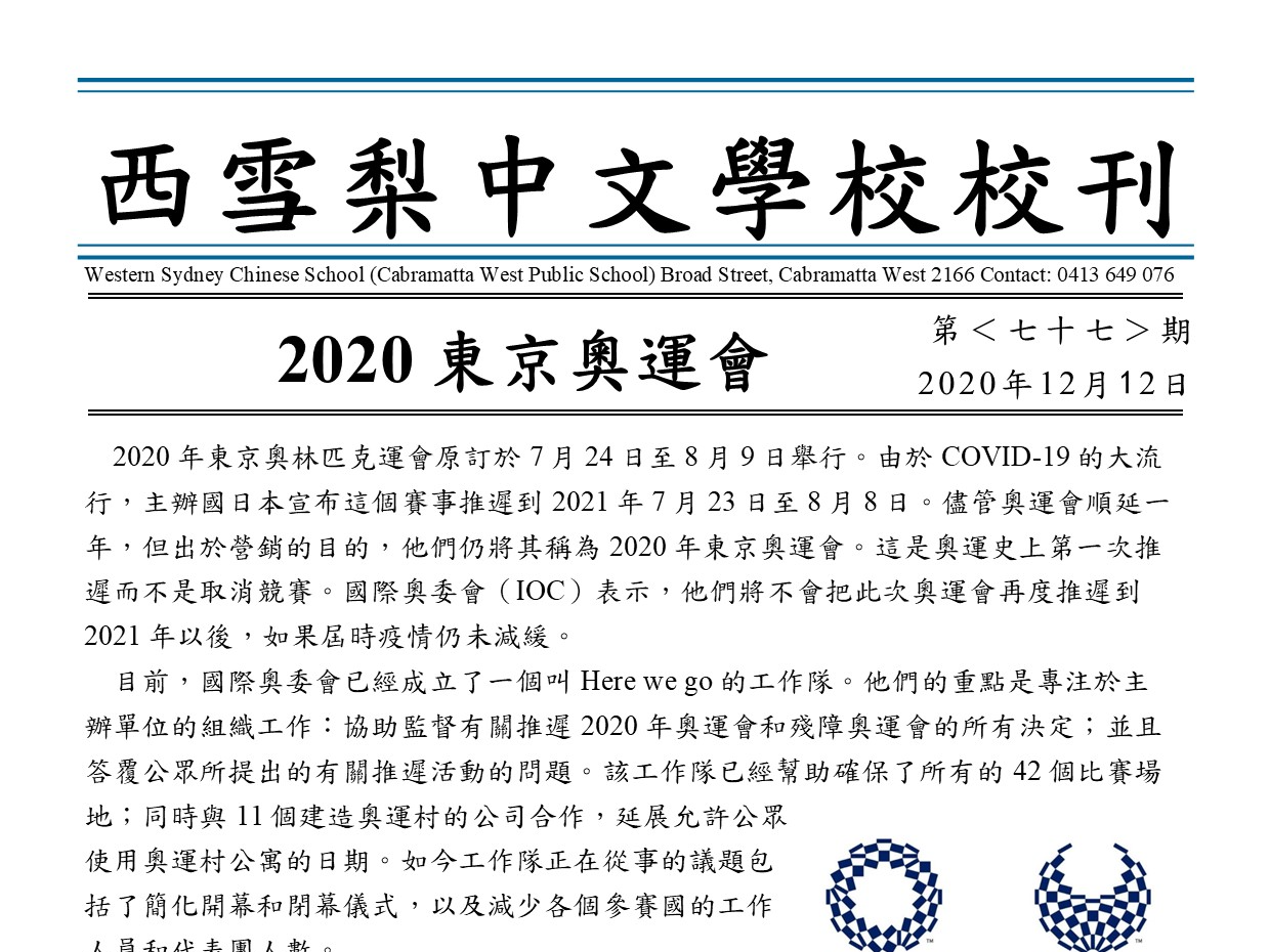澳大利亞西雪梨中文學校 第77期校刊