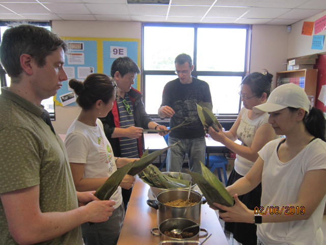 英國倫敦華僑中文學校舉辦端午節教學生如何包粽子及比賽活動