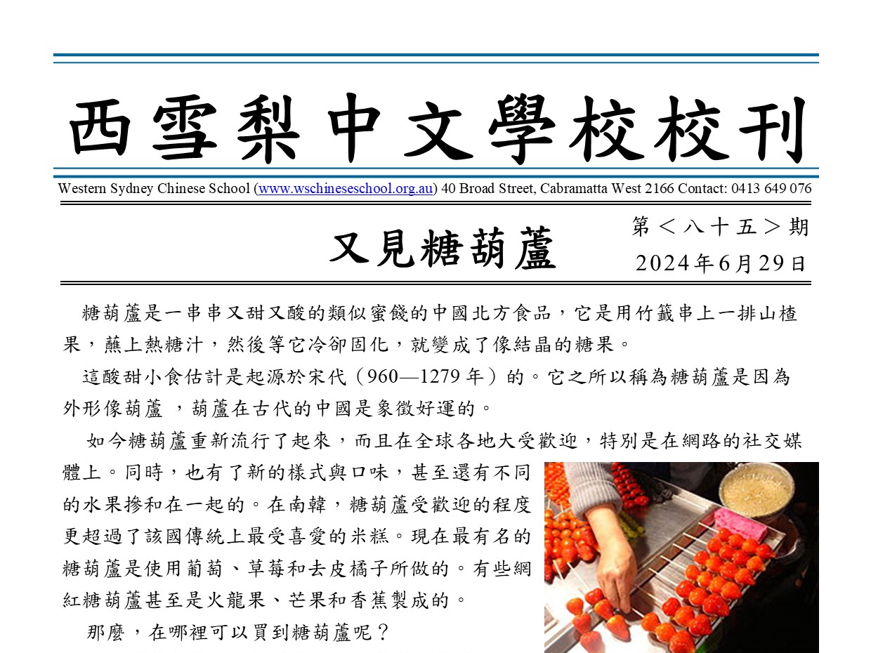 澳大利亞西雪梨中文學校第85期校刊
