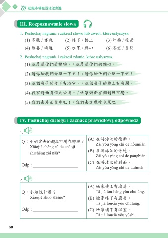 IV. Posłuchaj dialogu i zaznacz prawidłową odpowiedź