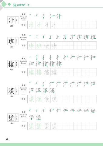 Lekcja 08 高莉亞的一天 അන kolejność ͒ 之 kresek zhī ᄳο ͒ ͒ 汁 汁 അන kolejność फ 班 kresek ᄳο फ फ 班 班 bān അන kolejność ᅽ 樓 kresek lóu ᄳο ᅽ ᅽ 樓 樓 അන kolejność ဏ 漢 kresek hàn ᄳο ဏ ဏ 漢 漢 അන kolejność ఝ 寶 kresek bǎo ᄳο ఝ ఝ 堡 堡 62