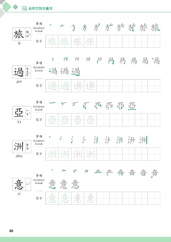 Lekcja 10 高莉亞想去臺灣 അන kolejność ࣚ 呂 kresek lǚ ᄳο ࣚ ࣚ 旅 旅 അන ཀ 過 kolejność kresek guò ᄳο ཀ ཀ 過 過 അන kolejność ԭ 亞 kresek Yà ᄳο ԭ ԭ 亞 亞 അන kolejność ݲ 洲 kresek ᄳο ݲ ݲ 洲 洲 zhōu അන จ 意 kolejność kresek yì ᄳο จ จ 意 意 80