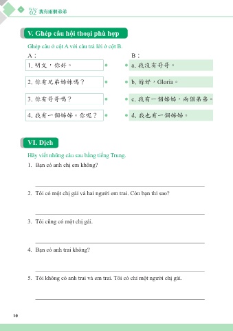 2. Tôi có một chị gái và hai người em trai. Còn bạn thì sao?