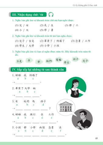 1. Nghe bản ghi âm và khoanh tròn chữ mà bạn nghe được.