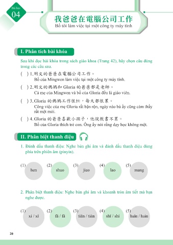 1. Đánh dấu thanh điệu: Nghe bản ghi âm và đánh dấu thanh điệu đúng
