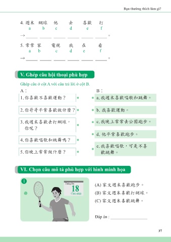 3. 我週末喜歡去打網球, c. 我晚上常常去公園跑步。