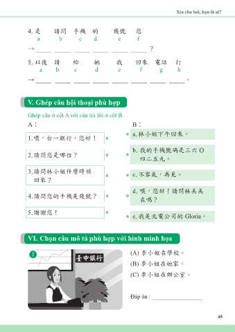 VI. Chọn câu mô tả phù hợp với hình minh họa