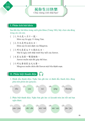 2. Phân biệt thanh điệu: Nghe bản ghi âm và khoanh tròn âm tiết mà bạn