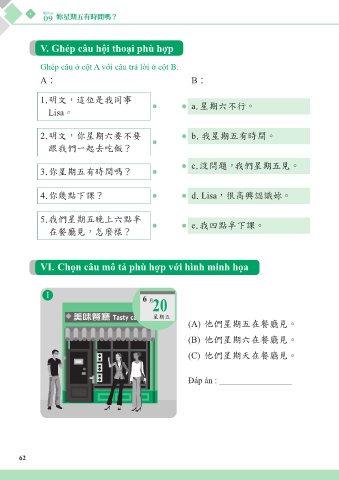 V. Ghép câu hội thoại phù hợp
