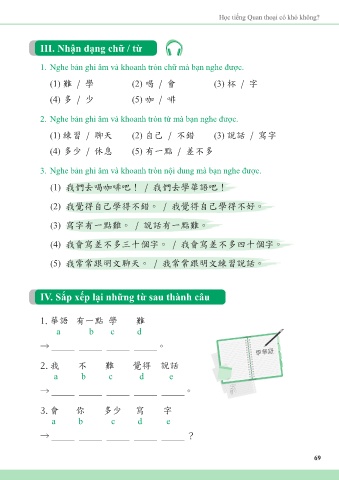 3. Nghe bản ghi âm và khoanh tròn nội dung mà bạn nghe được.