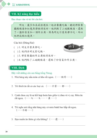 1. Nhà hàng này nấu món cá kho rất ngon.(……做得……)
