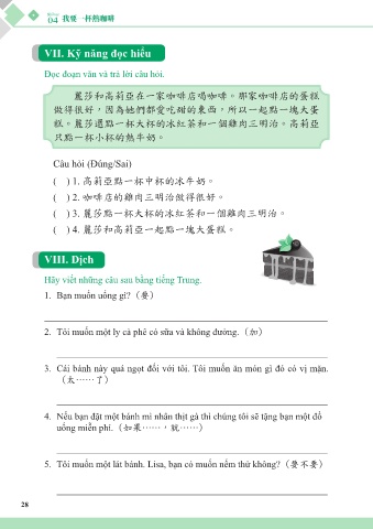 5. Tôi muốn một lát bánh. Lisa, bạn có muốn nếm thử không?(要不要)
