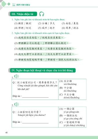 IV. Nghe đoạn hội thoại và chọn câu trả lời đúng