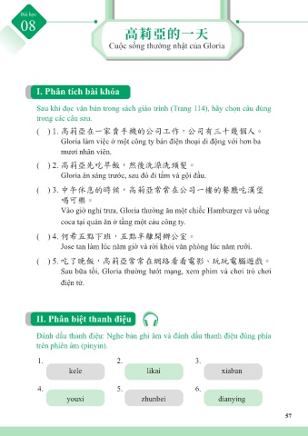 ( ) 1. 高莉亞在一家賣手機的公司工作,公司有三十幾個人。