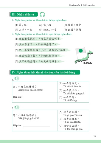 IV. Nghe đoạn hội thoại và chọn câu trả lời đúng