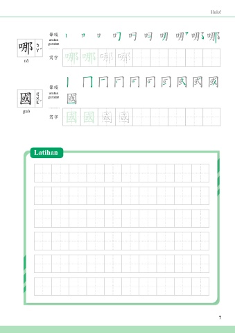 Hello! Halo! 筆順 筆順 urutan urutan guratan 哪 guratan 哪 哪 哪 哪 哪 哪 哪 寫字 nǎ nǎ 寫字 哪哪 哪 筆順 筆順 urutan guratan 國 國 guratan urutan 國 guó guó 國 國 國 國 國 寫字 寫字 國國 國 Exercise Latihan 7 7