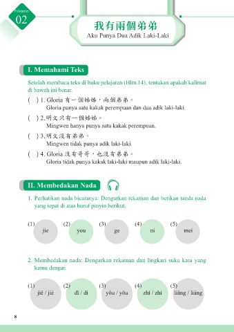 2. Membedakan nada: Dengarkan rekaman dan lingkari suku kata yang