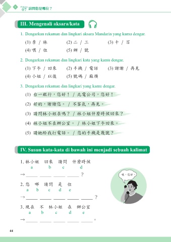 1. Dengarkan rekaman dan lingkari aksara Mandarin yang kamu dengar.