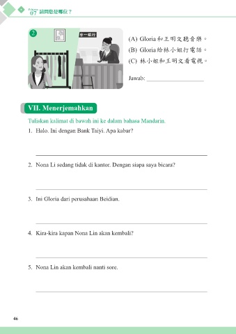 Tuliskan kalimat di bawah ini ke dalam bahasa Mandarin.