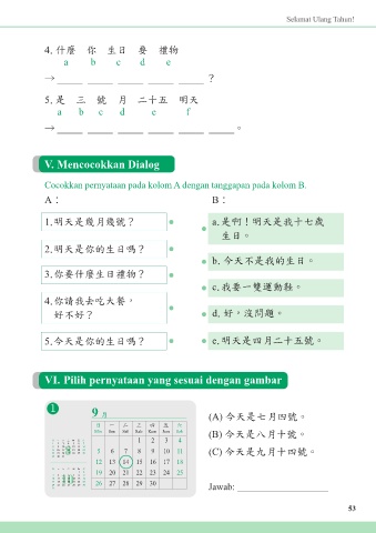 1. 明天是幾月幾號? a. 是啊!明天是我十七歲