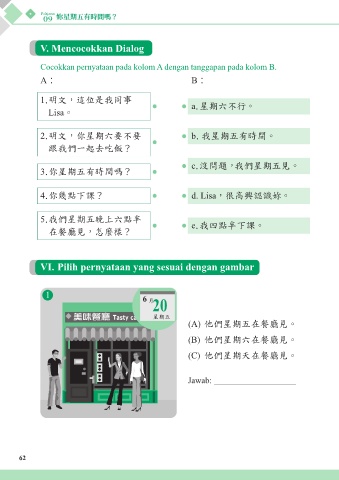 2. 明文,你星期六要不要 b. 我星期五有時間。