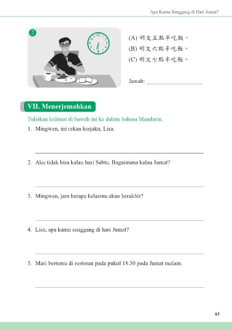 3. Mingwen, jam berapa kelasmu akan berakhir?