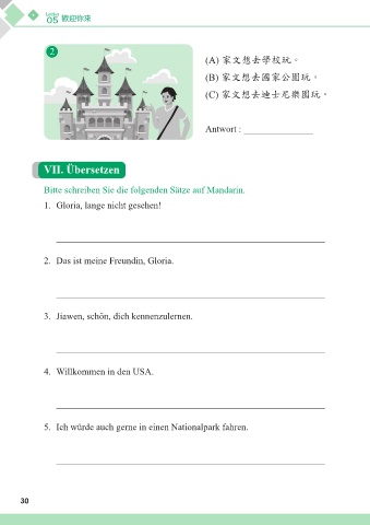 Bitte schreiben Sie die folgenden Sätze auf Mandarin.