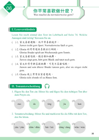 2. Tonunterscheidung: Hören Sie und markieren Sie die Silbe mit dem Ton,