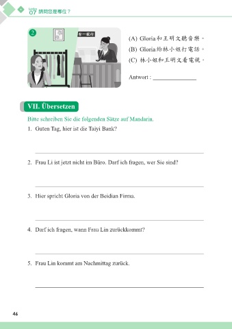 2. Frau Li ist jetzt nicht im Büro. Darf ich fragen, wer Sie sind?