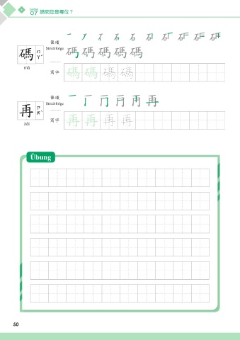 Lektion 07 請問您是哪位? അන ᇁ 碼 Strichfolge mǎ ᄳο ᇁ ᇁ 碼 碼 അන Strichfolge Ύ 在 ᄳο Ύ Ύ 再 再 zài Übung 50 50