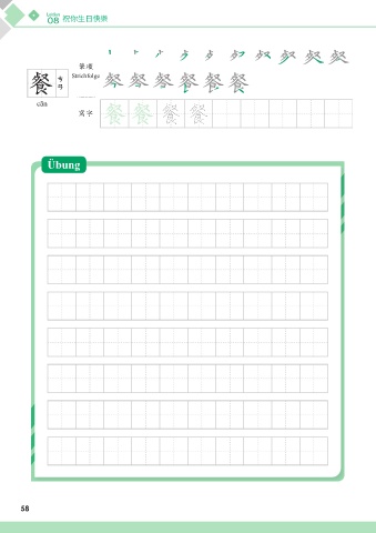Lektion 08 祝你生日快樂 അන 餐 Strichfolge cān ᄳο 餐 餐 Übung 58 58
