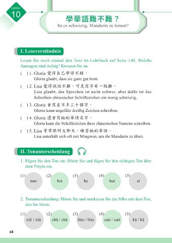 2. Tonunterscheidung: Hören Sie und markieren Sie die Silbe mit dem Ton,