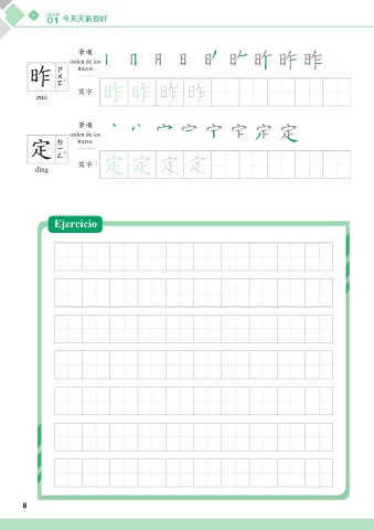 Lección 01 今天天氣很好 അන orden de los 昨 trazos ᄳο 昨 昨 zuó അන orden de los ֛ 定 trazos dìng ᄳο ֛ ֛ 定 定 Ejercicio 8 8