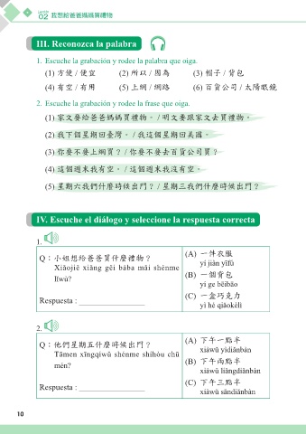 IV. Escuche el diálogo y seleccione la respuesta correcta