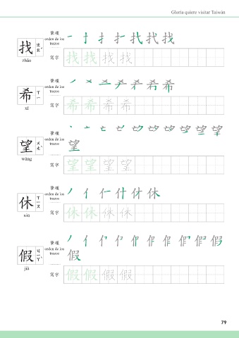 Gloria quiere visitar Taiwán അන orden de los Ҭ 找 trazos zhǎo ᄳο Ҭ Ҭ 找 找 അන orden de los Ҏ 西 trazos ᄳο Ҏ Ҏ 希 希 xī അන orden de los ૐ 望 trazos wàng ᄳο ૐ ૐ 望 望 അන orden de los ; 修 trazos xiū ᄳο ; ; 休 休 അන orden de los 價 trazos jià ᄳο 假 假 79