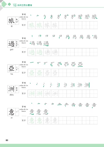 Lección 10 高莉亞想去臺灣 അන orden de los ࣚ 呂 trazos lǚ ᄳο ࣚ ࣚ 旅 旅 അන ཀ 過 orden de los trazos guò ᄳο ཀ ཀ 過 過 അන orden de los ԭ 亞 trazos Yà ᄳο ԭ ԭ 亞 亞 അන orden de los ݲ 洲 trazos ᄳο ݲ ݲ 洲 洲 zhōu അන จ 意 orden de los trazos yì ᄳο จ จ 意 意 80