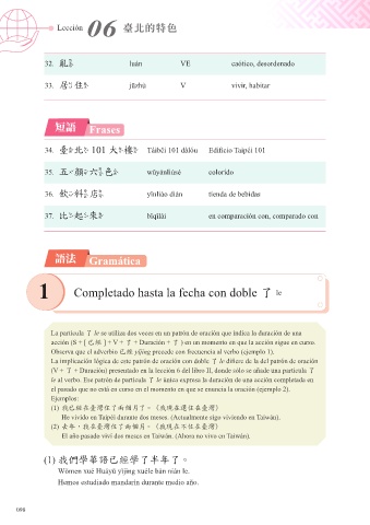 (V + 了 + Duración) presentado en la lección 6 del libro II, donde sólo se añade una partícula 了